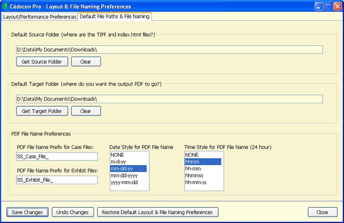 This is where you can set default folders for both the source files and the target (output) files and set some file naming preferences.